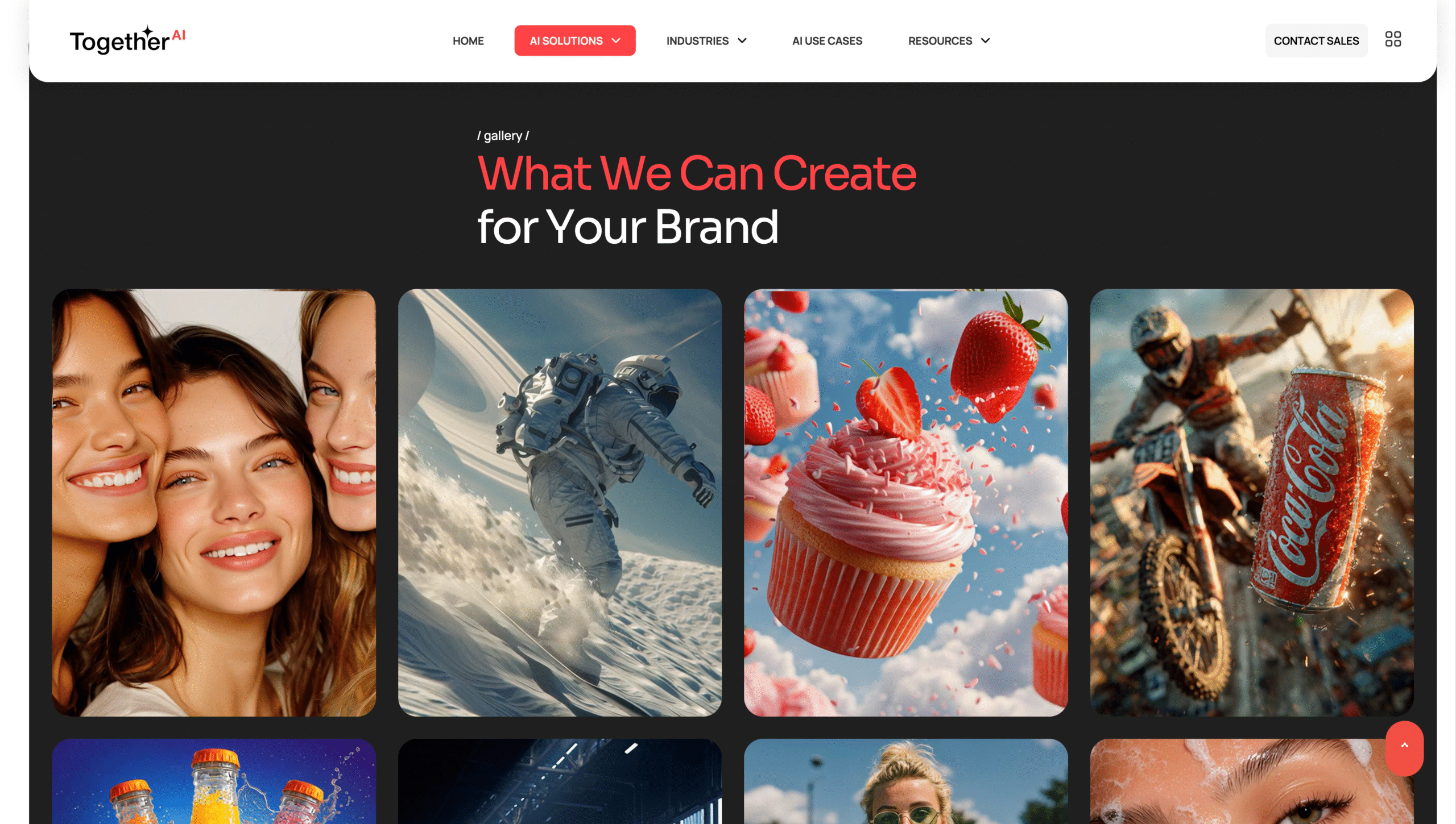 A dedicated section showcases Together AI’s Implementation Framework — a four-stage methodology that breaks down the complexity of AI into a predictable business process: analyzing current operations, training custom AI models, testing accuracy and compliance, and deploying automation at scale. This transparent system reduces friction for prospects and establishes trust in Together AI’s technical capabilities.